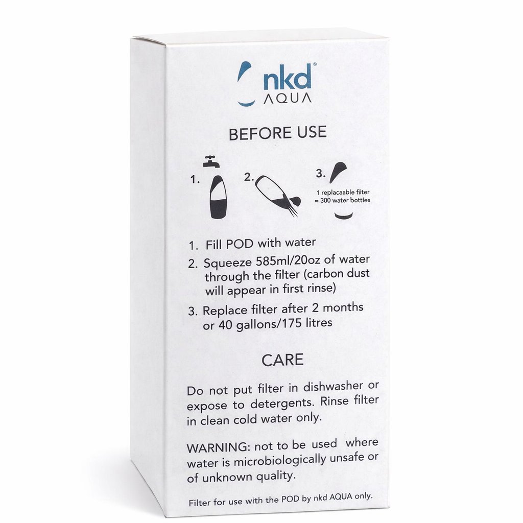 This is the genuine replaceable filter designed for the NKD POD bottle system. It helps improve water taste while reducing impurities, giving you cleaner, better-tasting drinking water on the go.